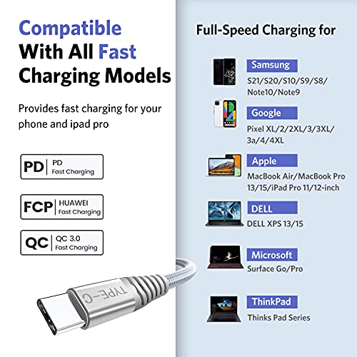 Ampia compatibilità: cavo USB C a C compatibile con Samsung Galaxy S21/S21 Plus/S21 Ultra/S20/S20 Plus/S20 Ultra/S10/S9/S8/Note 8/Note 9/Note10/Note 10 Plus/A80/A70, Google Pixel 2/2XL/3/3XL/4/4. XL/Nexus 6P/5X, Huawei P30 P20, P20 Pro, P10, P9, Mate10/20, iPad Pro 12,9″ (2020) 11″ (2018)/12,9″ Gen 3 (2018) con il caricabatterie originale, ecc. (vedere la descrizione del prodotto per più modelli)