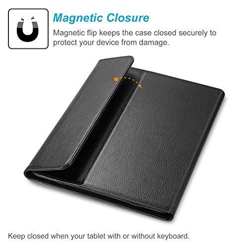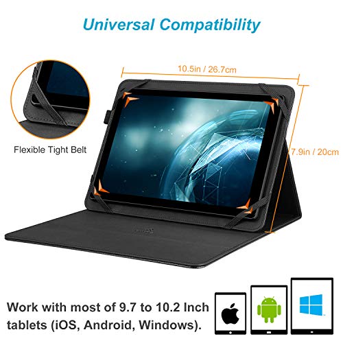 Progettato per contenere in modo sicuro la maggior parte dei tablet da 9,7 “10” 10,1 “10,2” pollici. (Nessuna apertura posteriore della fotocamera; NON supporta lo sleep / wake automatico per tutti i tablet).